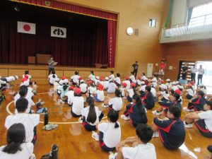 あいにくの雨となりましたが、小値賀の小学生から高校生までが体育館に集まり、