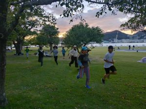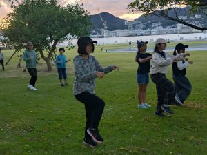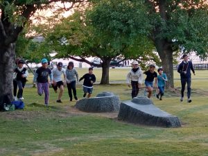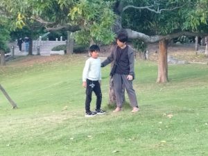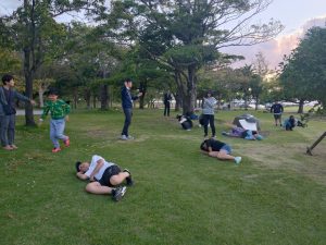 無事ホテルについて水辺の森公園でレクリエーションで楽しんでいます。