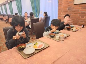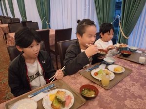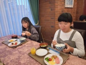 少し疲れていそうですが、元気に朝ご飯を食べました。