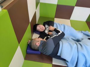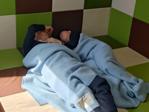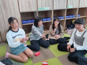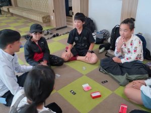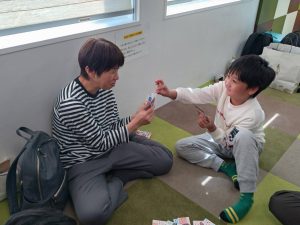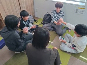 トランプをしたり、休憩したりしながら小値賀に戻ってきています。