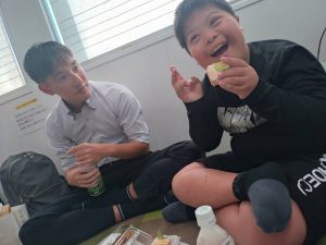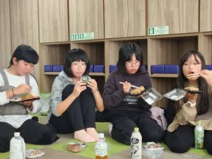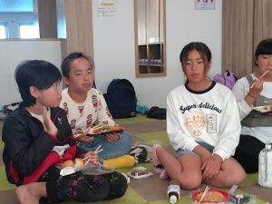 自分が食べるものを買ってきて、船の中で輪になって食べました。