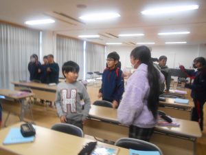 まずは、中学1年生と6年生と英語で自己紹介