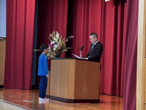 各学年の代表児童が修了証書をいただきました。