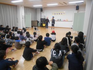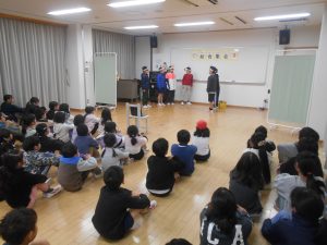 今回は給食集会では、健やか委員会が給食を食べる大切さについての劇を行いました。