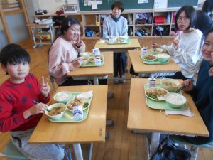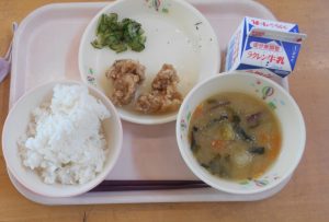 また、当日の給食の献立は6年生が家庭科の学習で考えてた「ご飯」「味噌汁「鳥の唐揚げ」でした。
