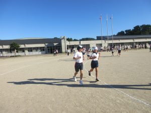 10月10日(金)の朝の時間で小中高一貫持久走大会に向けた2回目の練習がありました。